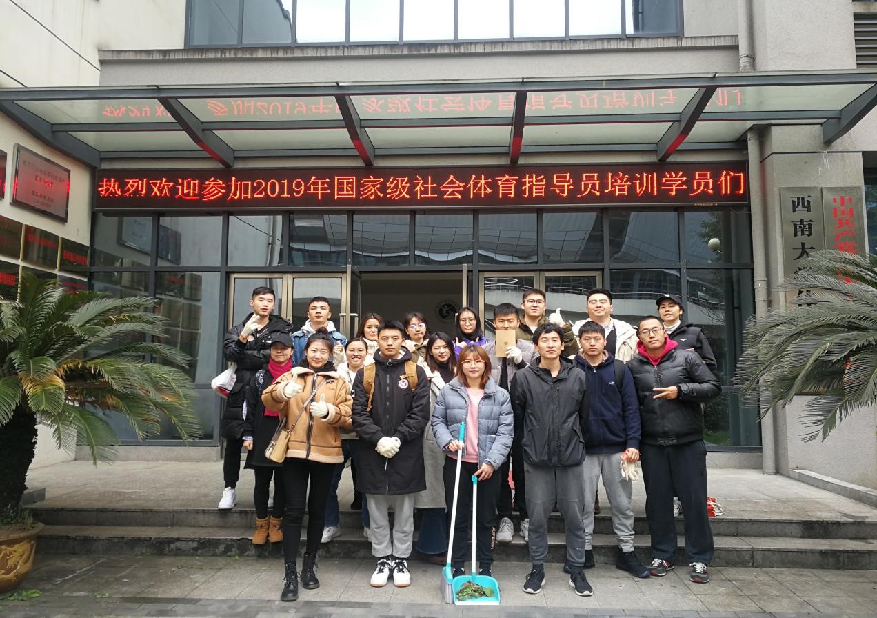 讲座结束后,蒋菠书记带领党员同志和群众进行了“美化西大,爱护体院,从我做起”的服务实践活动。同学们都积极打扫教室,捡拾公司和体育馆四周垃圾。