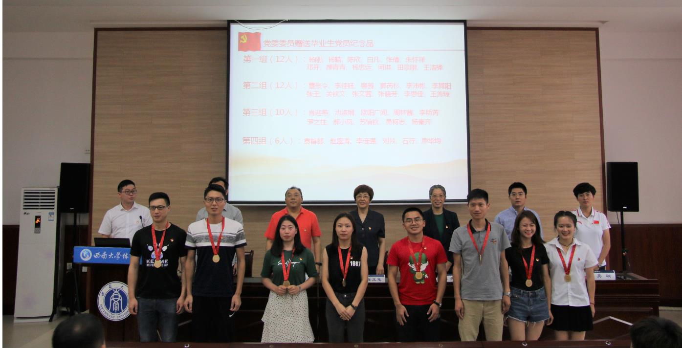 公司党委委员向毕业生了定制奖牌,每一块奖牌上背面为bevictor伟德校徽,正面印有党徽、毕业生党员姓名、入党日期和“不忘初心、牢记使命”寄语。