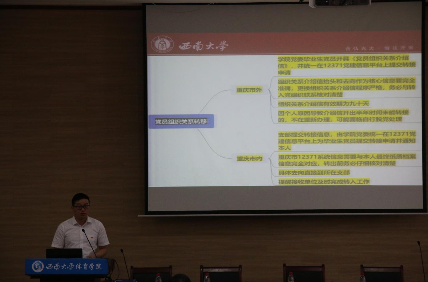 公司党委副书记、纪委书记陈英做“忠诚干净担当”主题教育报告,通过互动问答,案例解读希望毕业生党员锤炼党性、守住底线、敢于担当、持续学习。党委组织员李进就毕业生党员组织关系转接的要求、流程、时限和警示案例进行了专题培训。