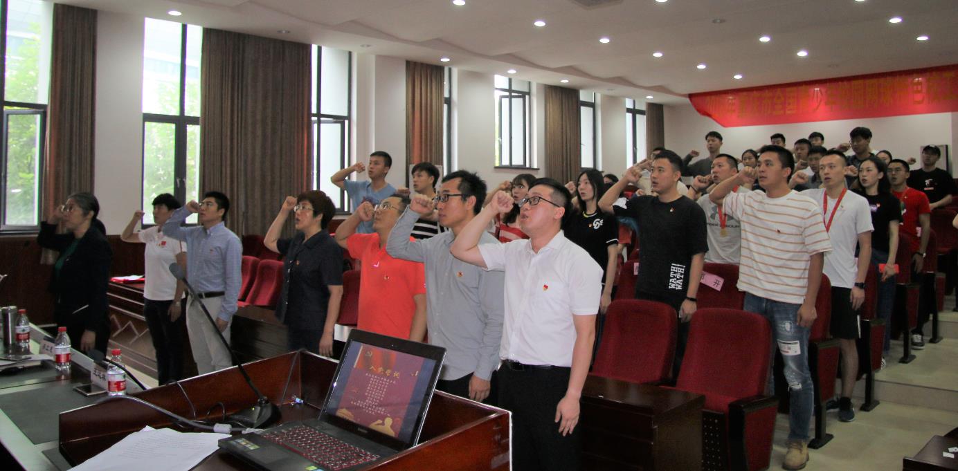 在老党员重温入党誓词和新党员入党宣誓仪式上,姜立惠书记寄语全体毕业生党员做全面建成小康社会的见证者、基本实现社会主义现代化的建设者、建成社会主义现代化强国的贡献者、实现“中国梦体育梦”的领跑者。在场全体党员同唱国际歌,并面对党旗进行了庄严的宣誓仪式。毕业生党员代表吴柯志感恩母校和党组织,回顾了自己入党过程的成长与收获,倡议全体党员做遵纪守法,文明离校的表率并践行公司党委对毕业生党员提出的“五个一”要求。姜立惠书记希望全体党员同志以实际行动践行入党誓词,以优秀党员的标准严格要求自己,发挥好先锋模范作用,将个人的努力融入历史的进程,为国家、社会和公司公司的发展贡献自己的力量。
