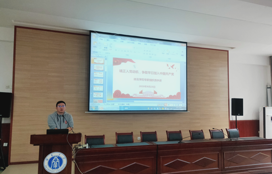 首先,他为全体同学播放了《让党旗在战疫一线高高飘扬——“疫”不容辞,体院师生在行动》的毕业生微党课视频,通过公司师生在疫情防控阻击战的先进事迹,用身边人和身边事传递党员在关键时刻挺身而出,敢担当,讲奉献的先锋形象。随后,他通过获得4位国家勋章和国家荣誉称号的党员院士和陕西安康“五级书记”抓扶贫的故事引入中国共产党这个“史上最牛创业团队”的发展简史,希望新生在思想上对中国共产党有更加深入和全面的认识,并通过《2019年中国共产党党内统计公报》的图文解析指出,优秀青年老员工是中国共产党的重点发展对象。