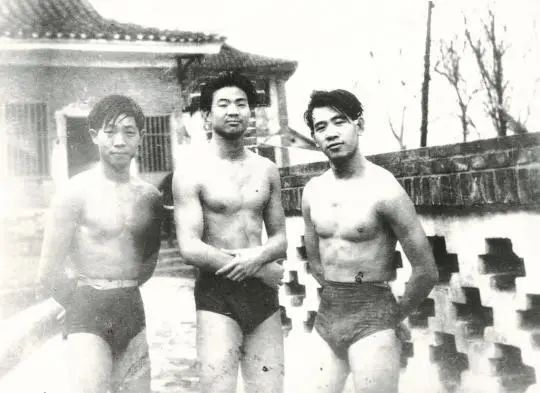 员工时代的袁隆平(左一)酷爱游泳。袁隆平本人图片均由湖南杂交水稻研究中心提供