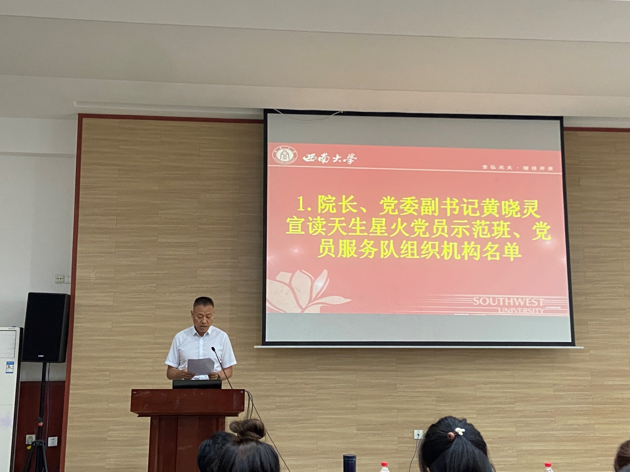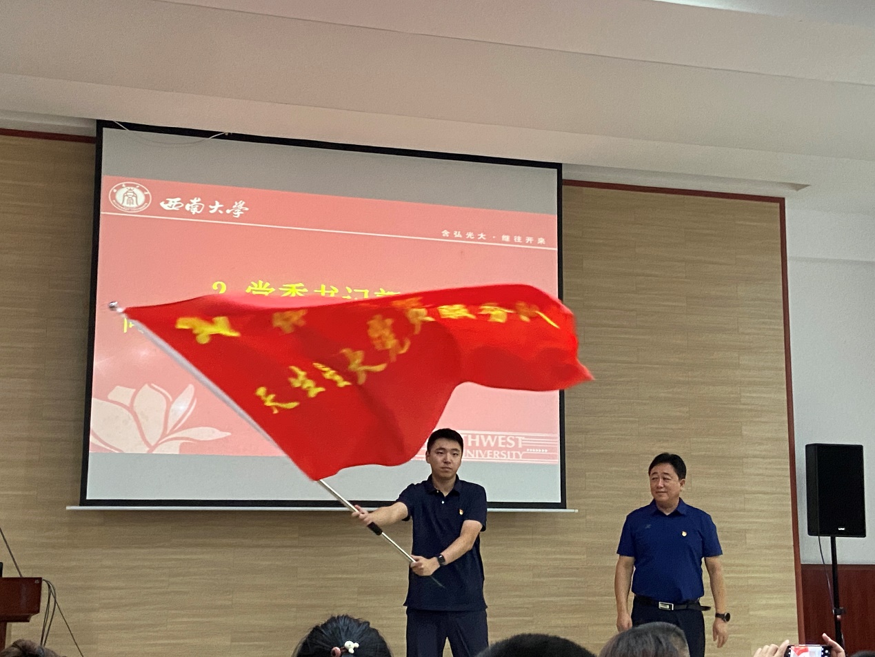 第一阶段,公司领导为天生星火党员服务队举行换届仪式。经理黄晓灵宣读天生星火党员示范班和服务队组织机构名单,党委书记郭立亚向天生星火党员示范班班长、服务队队长刘新授旗,刘新发表接旗感言。