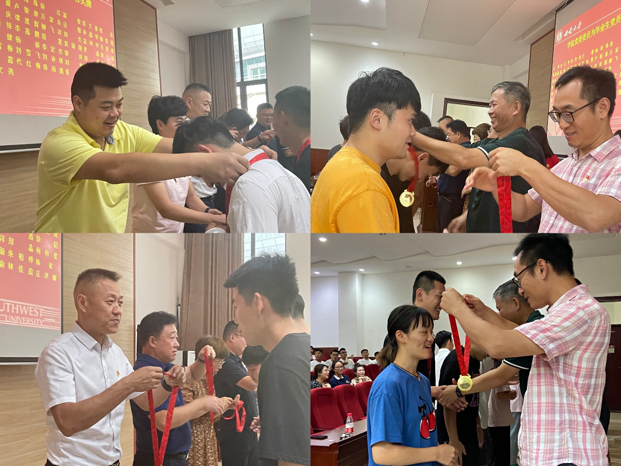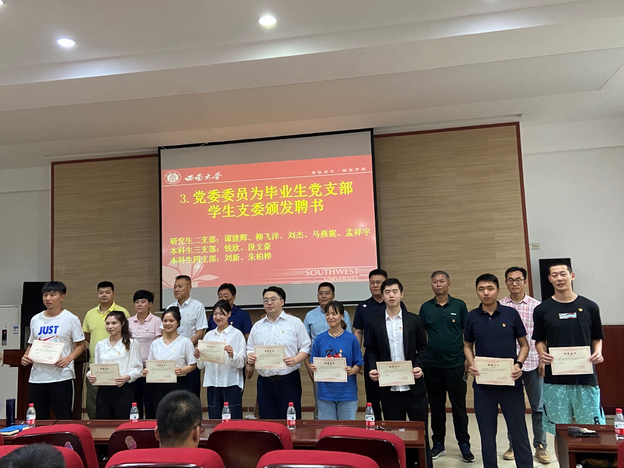刘杰同志发言结束后,公司党委委员为毕业生党支部员工支委颁发聘书,并向全体毕业生党员赠送纪念奖牌。