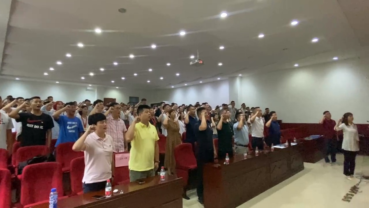 会议临近结束,张剑兰同志带领大家进行新党员入党宣誓和老党员重温入党誓词。