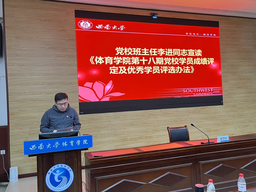 仪式在庄严的国歌声中开始。张剑兰宣读《伟德体育第十八期入党积极分子培训班教学指导计划》,李进宣读《伟德体育第十八期党校学员成绩评定及优秀学员评选办法》并强调党校学习纪律。2021 级硕士研究生张蕾代表学员发言,分享自己成为入党积极分子后在思想和行动上的成长经历,号召学员珍惜学习机会,严守学习纪律,以实际行动积极向党组织靠拢。