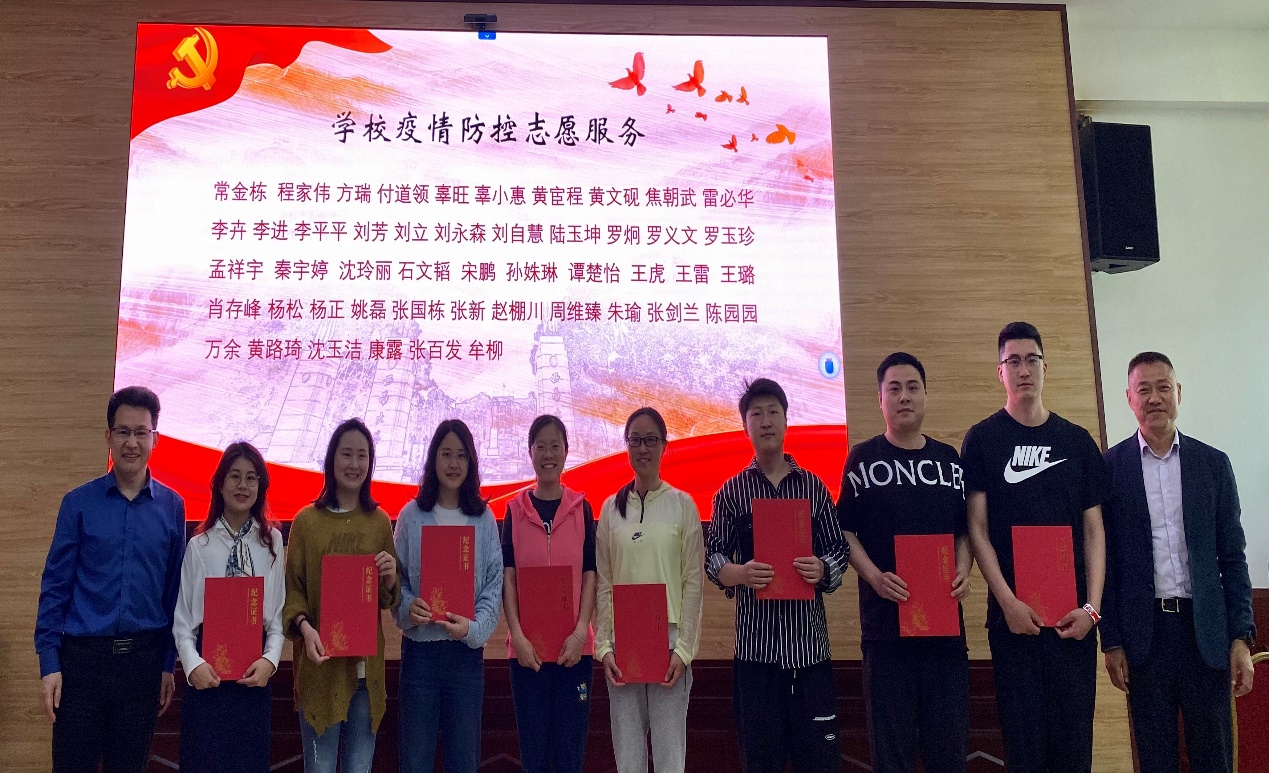 罗义文书记和黄晓灵经理为教职工志愿者颁发纪念证书,与会志愿者分组上台领取证书并合影留念,脸上洋溢着自豪的笑容,赢得了全场热烈的掌声。